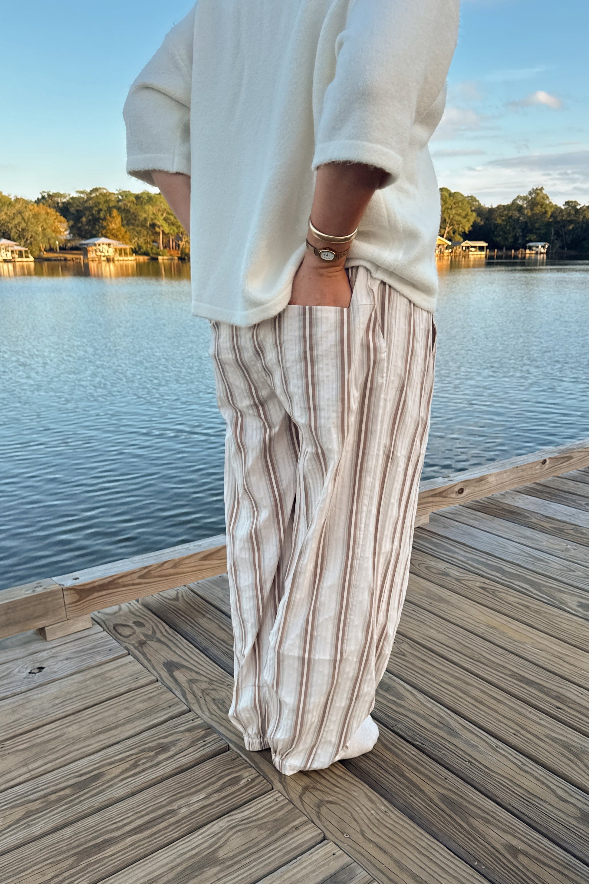 Step into retro-cool with these Retro Coast Parachute Pants—your new go-to for effortless style and ultimate comfort. Featuring a lightweight striped fabric, playful pleated details, and slouchy wide legs that cinch at the ankle, these pants are a nod to vintage vibes with a modern twist. Complete with a stretchy elastic waistband and four practical pockets, they’re perfect for chasing sunsets, weekend adventures, or just lounging in style. Fun, funky, and unapologetically you—these pants are more than a staple; they’re a statement.
