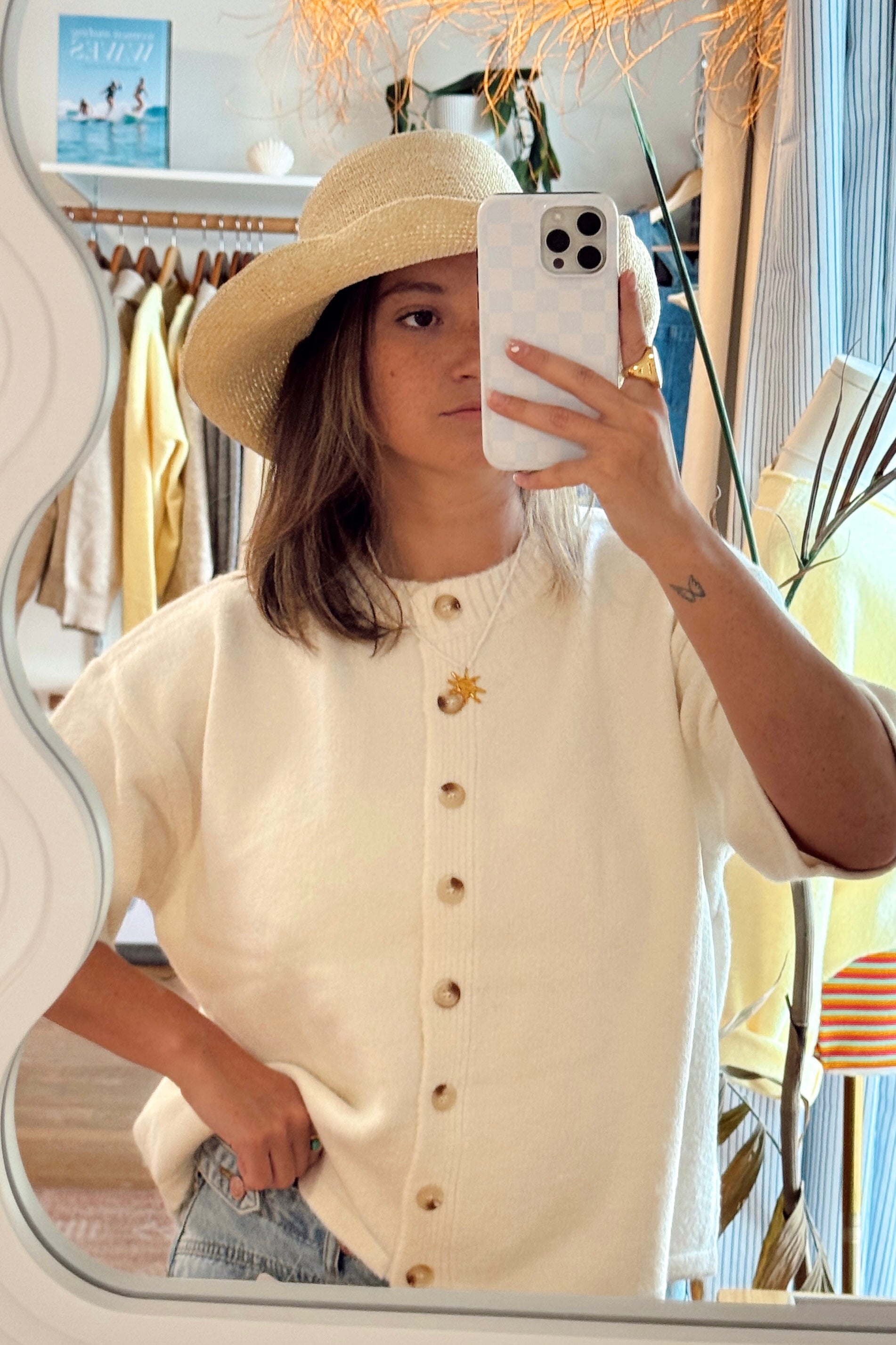 Cloud Puff Knit Cardigan will ACTUALLY be the softest piece in your wardrobe. This short-sleeve, cloud-like knit feels weightless against your skin while adding a touch of effortless elegance to your beachy wardrobe. Perfect for cozy mornings, sunlit afternoons, or layering over your favorite fall pieces, it’s the dreamy, go-to cardigan you’ll reach for again and again.